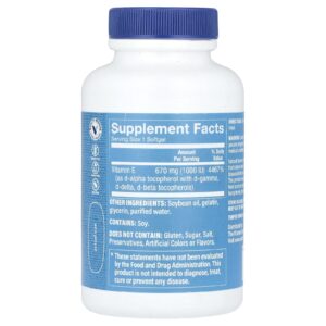 Fonte Natural de Vitamina E d-Alfa Pesquisas demonstraram que a fonte natural de Vitamina E d-Alfa fornece o dobro da biodisponibilidade da d-Alfa, a forma sintética da Vitamina E. Este produto contém 100% de Vitamina E d-Alfa de fontes naturais de alimentos combinadas com tocoferóis d-Beta, d-Gama e d-Delta, o restante da família da Vitamina E.