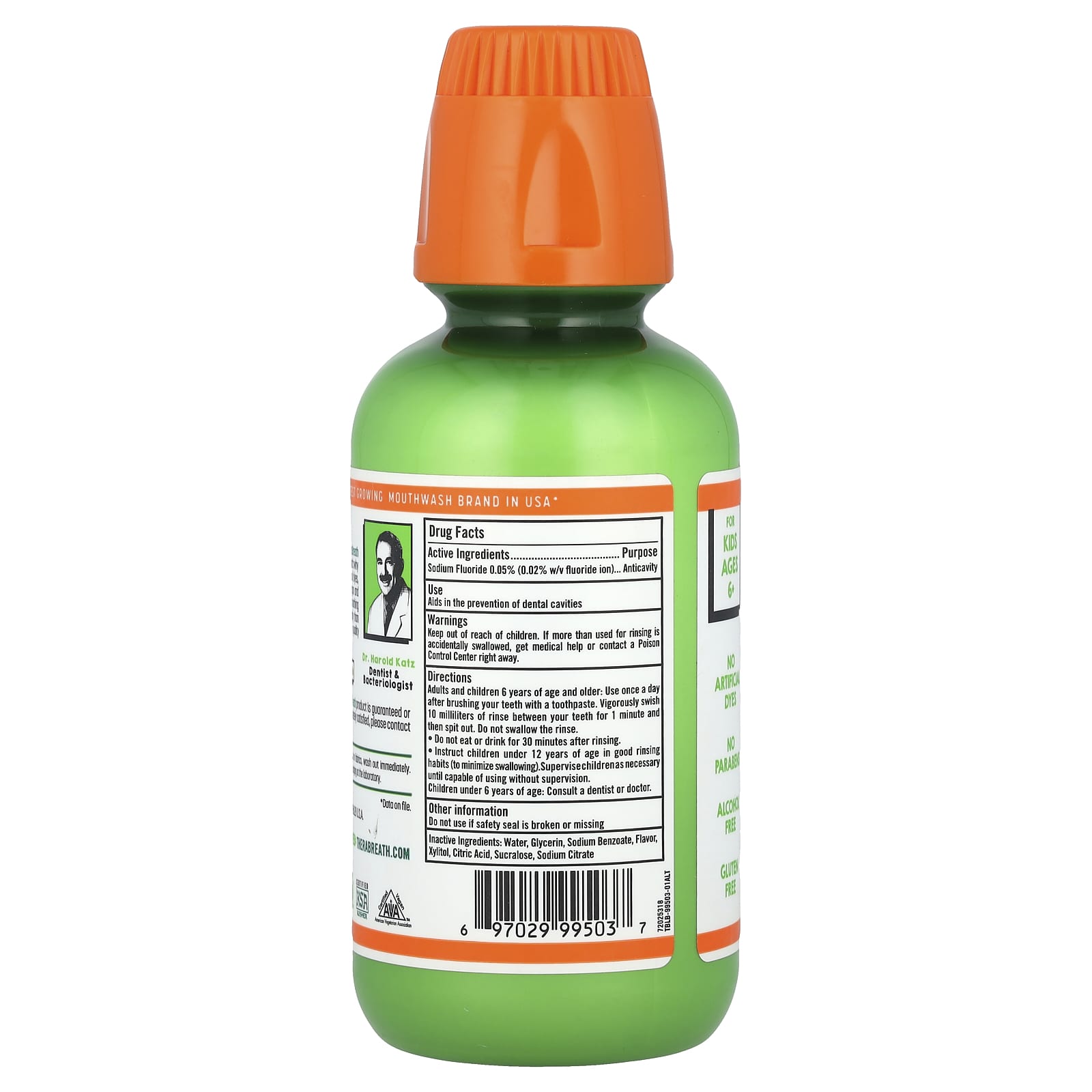 Dr. Harold Katz criou a fórmula TheraBreath em 1993 para sua própria família. É por isso que nossos produtos infantis não contêm corantes artificiais, parabenos ou álcool, e são veganos e sem glúten. Além de água, não há nada que você coloque na boca com mais regularidade do que seus produtos de higiene bucal. É por isso que ingredientes de qualidade são importantes. Dr. Harold Katz Dentista e Bacteriologista