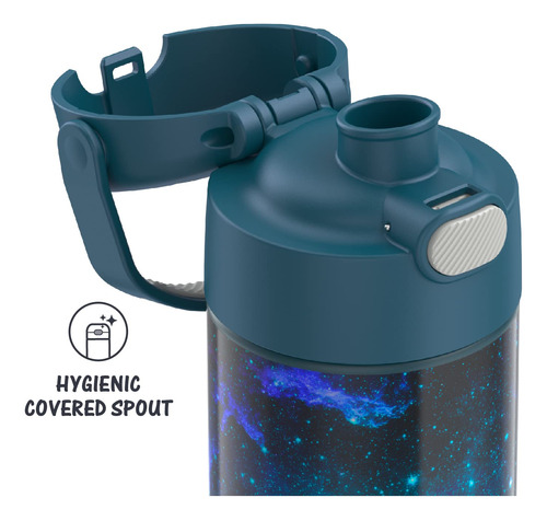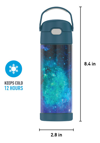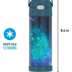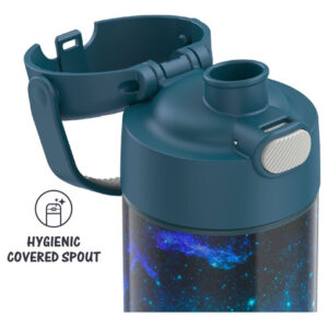 Kids love FUNtainer products, but parents love them even more. The FUNtainer 16-ounce Vacuum Insulated Stainless Steel Water Bottle with Spout keeps drinks cold for up to 12 hours. No make believe required. FUNtainer products are always made with love from worry-free materials. The double wall stainless steel construction is built to handle drops, dings and assorted roughhousing. The 16oz bottle includes an integrated carry handle with soft-touch grip, making it easy for kids to carry with them throughout the day. The handle can also be folded down when not in use. Keep germs away with the hygienically covered drinking spout. To clean, you can pop your FUNtainer water bottle in the dishwasher; however washing by hand is recommended. Not suitable for hot liquids.