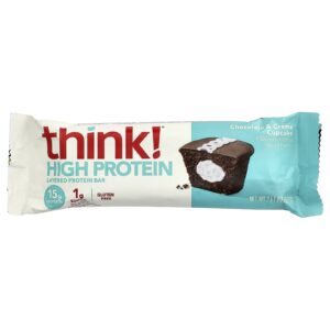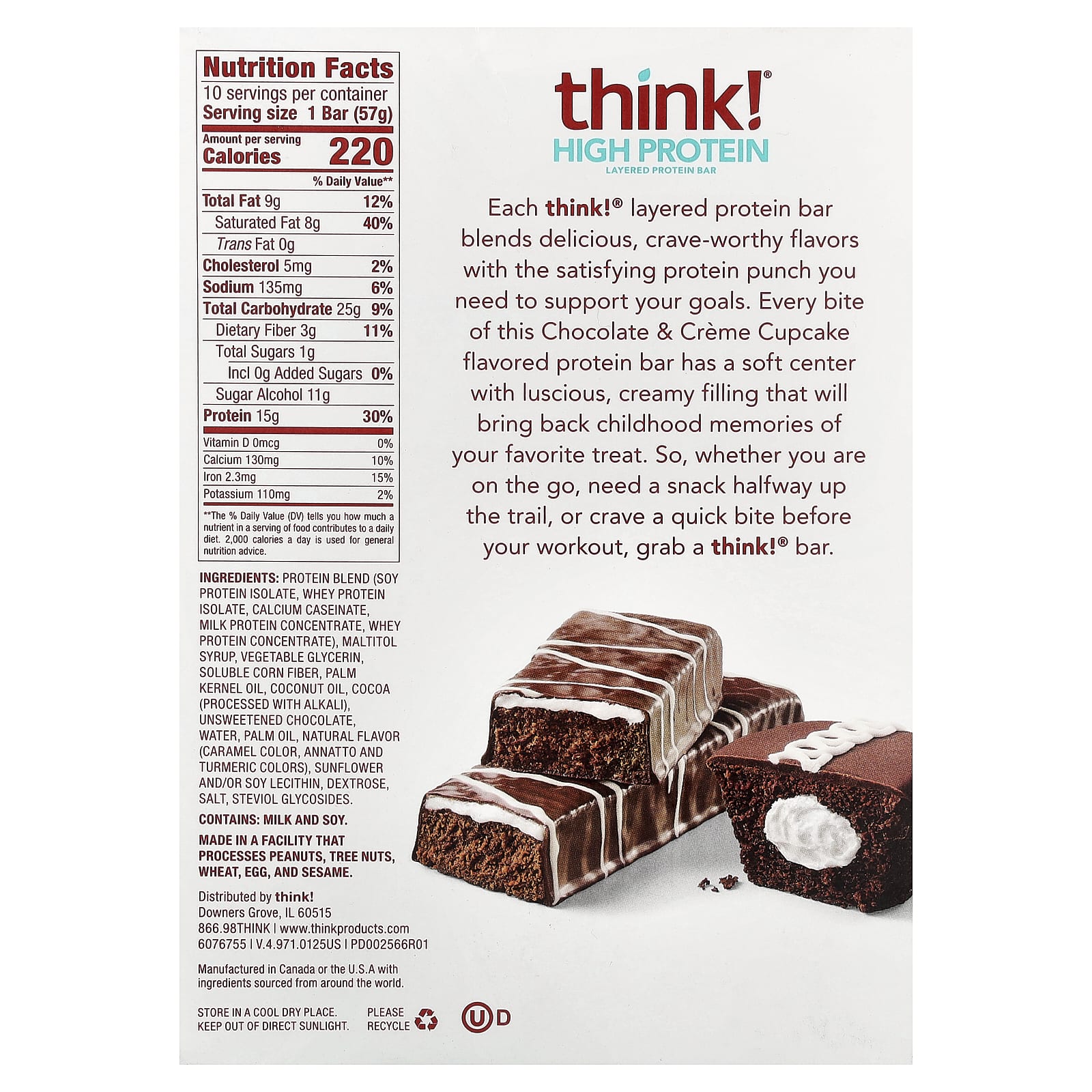 Think ! Barras com Alto Teor de Proteína Bolinho de Chocolate e Creme 10 Barras 57 g (201 oz) Cada – think! Nutrição Esportiva Barrinhas e snacks esportivos Snacks proteicos.