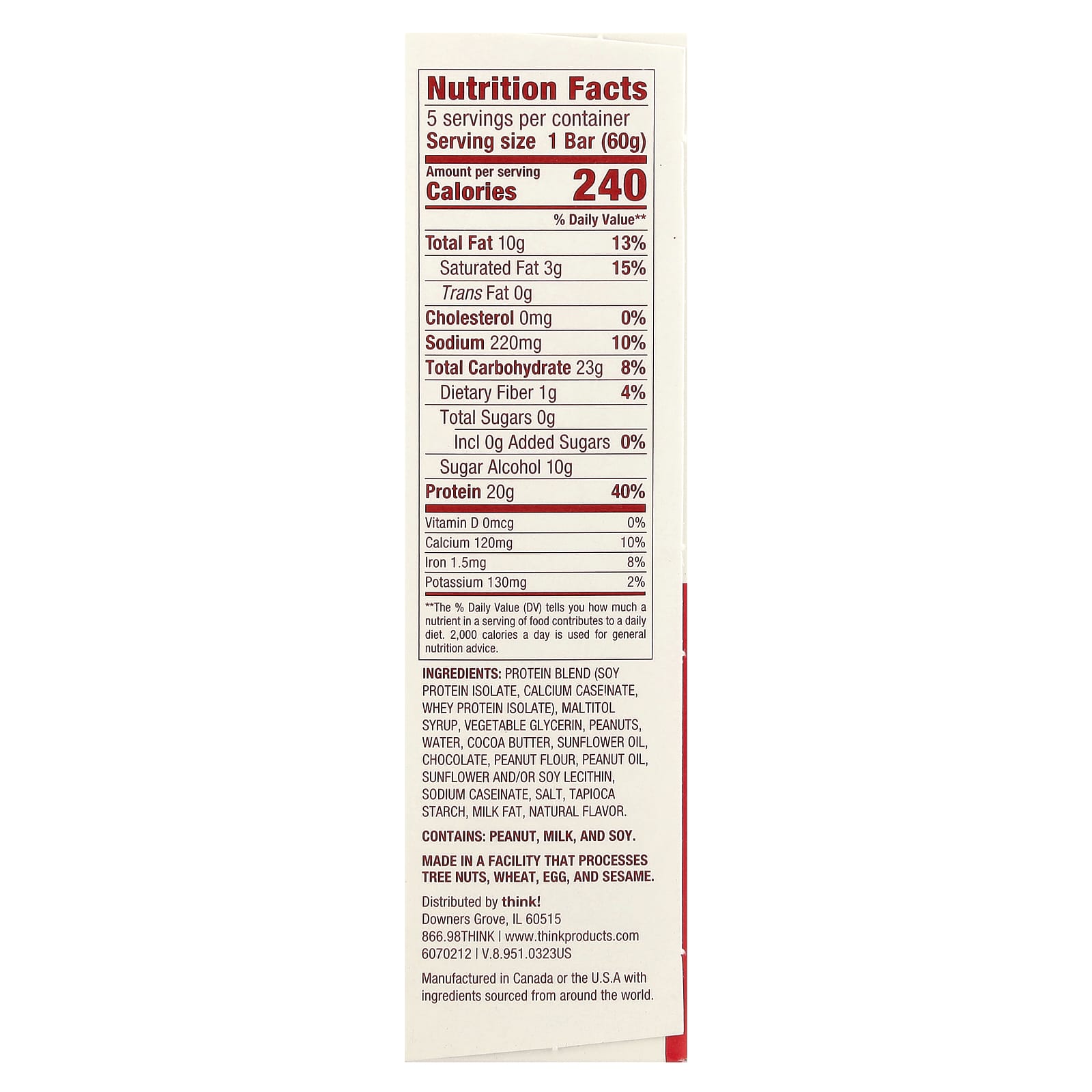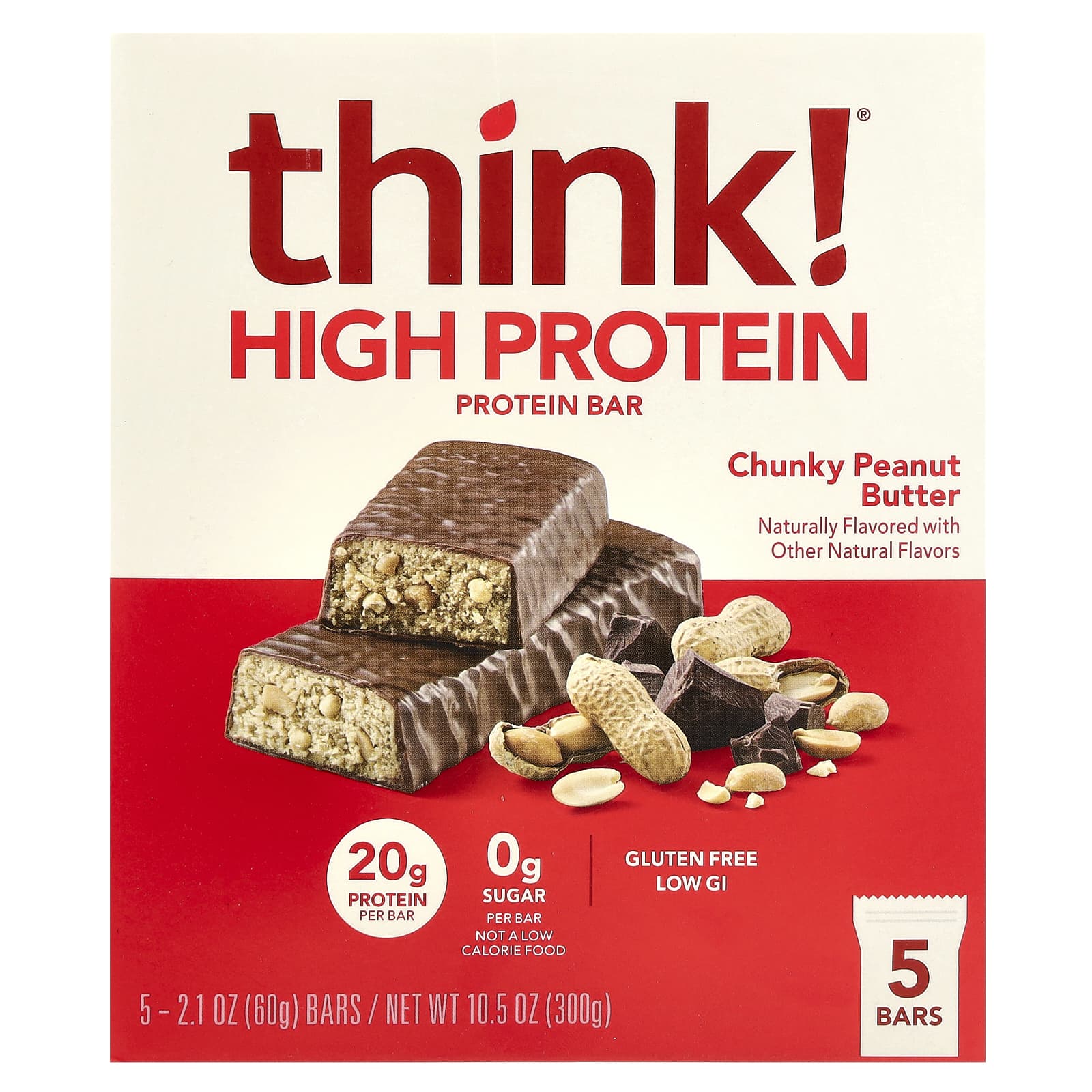 Think ! Barras com Alto Teor de Proteína Chunky Peanut Butter 5 Barras 60 g (21 oz) Cada