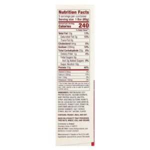 Mistura de Proteínas (isolado proteico de soja, caseinato de cálcio, isolado de whey protein), xarope de maltitol, glicerina vegetal, amendoim, água, manteiga de cacau, óleo de girassol, chocolate, farinha de amendoim, óleo de amendoim, girassol e/ou lecitina de soja, caseinato de sódio, sal, amido de tapioca, gordura de leite, sabor natural.