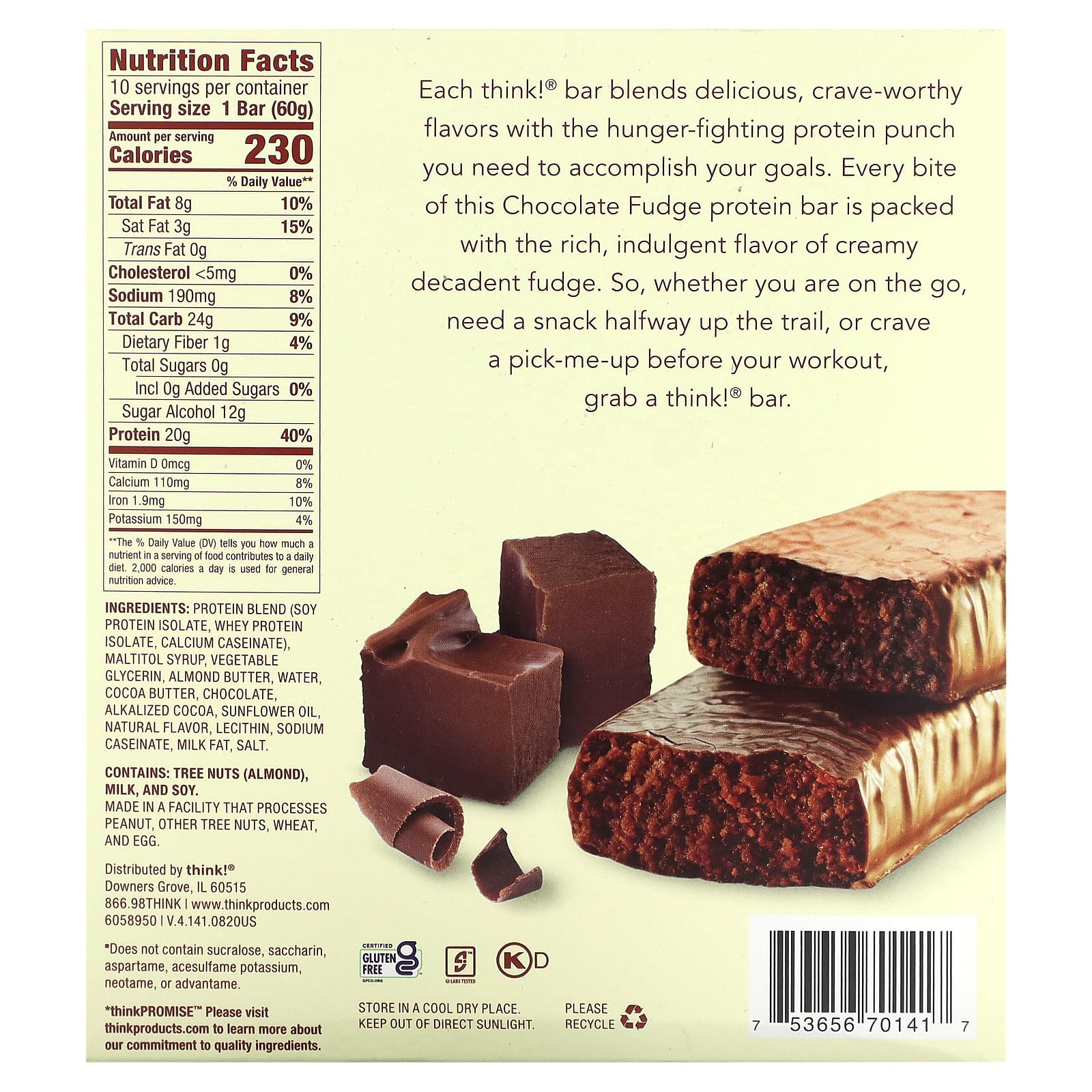 Cada barra da think! ® combina sabores deliciosos e valiosos com o ponche de proteína que combate a fome de que você precisa para atingir seus objetivos. Cada mordida nesta barra de proteína de Fudge de Chocolate é embalada com o sabor rico e indulgente do fudge cremoso e decadente. Portanto, se você estiver em movimento, precisar de um lanche no meio da trilha ou de um estimulante antes do treino, pense duas vezes! barra.