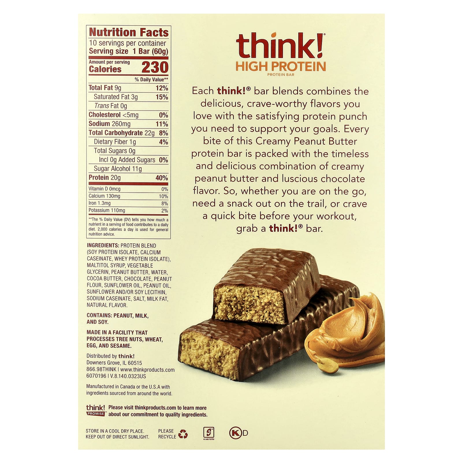 Think ! Barras com Alto Teor de Proteína Manteiga de Amendoim Cremosa 10 barras 60 g (21 oz) cada – think! Nutrição Esportiva Barrinhas e snacks esportivos Barras de Proteína.