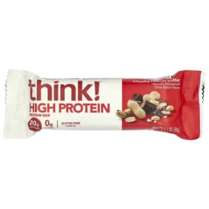 Think ! Barras com Alto Teor de Proteína Manteiga de Amendoim em Pedaços 10 barras 60 g (21 oz) cada – think! Nutrição Esportiva Barrinhas e snacks esportivos Barras de Proteína.