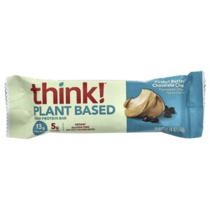 Think ! Barras de Proteína à Base de Plantas Manteiga de Amendoim e Lascas de Chocolate 10 Barras 50 g (176 oz) Cada – think! Nutrição Esportiva Barrinhas e snacks esportivos Barras de Proteína Barras de Proteínas à base de Plantas.