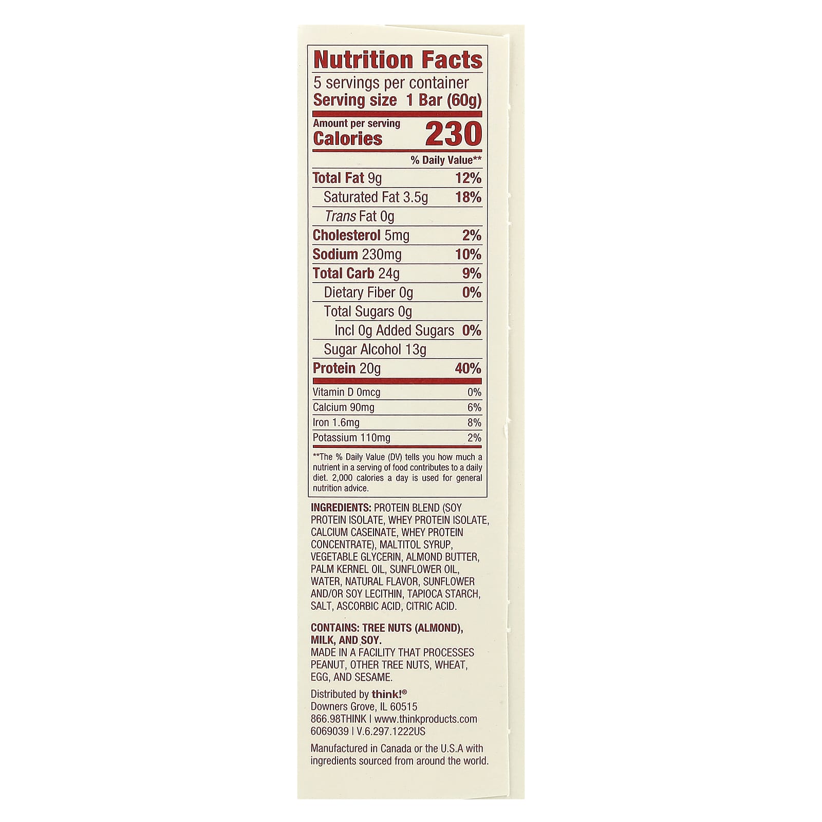 Fabricado no Canadá ou nos EUA com ingredientes provenientes de todo o mundo.
