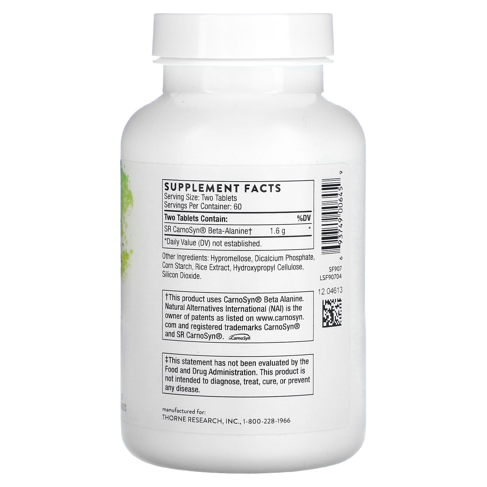 Thorne Beta Alanine-SR 120 Comprimidos (800 mg por Comprimido) – Thorne Suplementos Aminoácidos Beta Alanina.