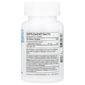 Thorne Bisglicinato Ferroso 60 Cápsulas (25 mg por Cápsula) – Thorne Suplementos Minerais Ferro Bisglicinato de Ferro.
