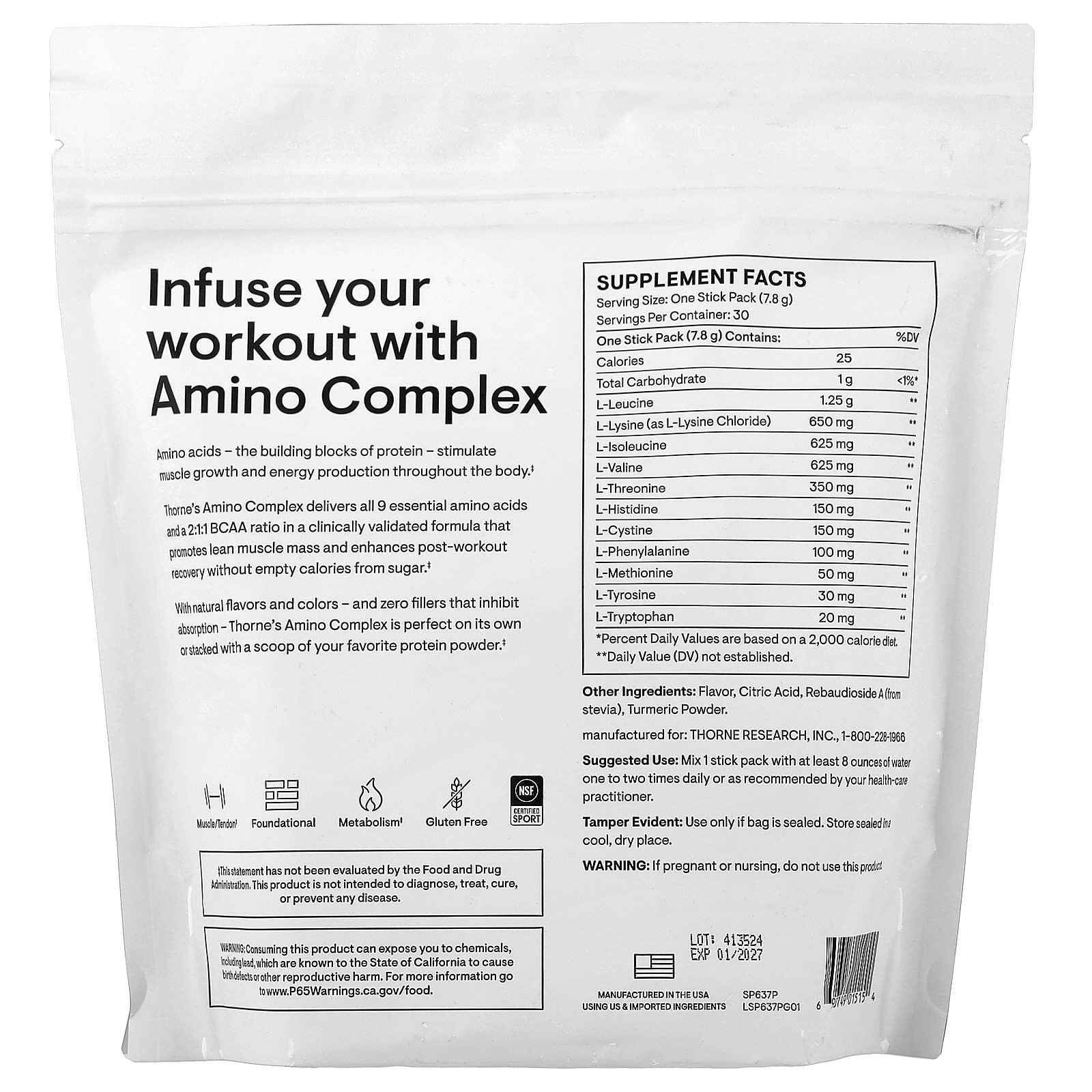 O Complexo de Aminoácidos da Thorne fornece todos os 9 aminoácidos essenciais e uma proporção de BCAA 2:1:1 em uma fórmula clinicamente validada que promove a massa muscular magra e melhora a recuperação pós-treino sem as calorias vazias do açúcar.
