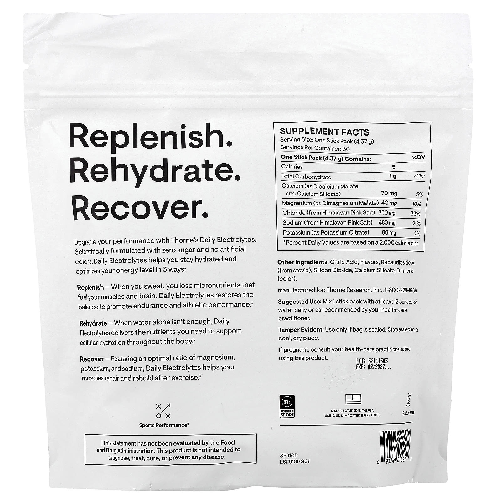 Thorne Eletrólitos Diários Limonada de Manga 30 Embalagens 437 g (015 oz) Cada – Thorne Nutrição Esportiva Hidratação e Eletrólitos.
