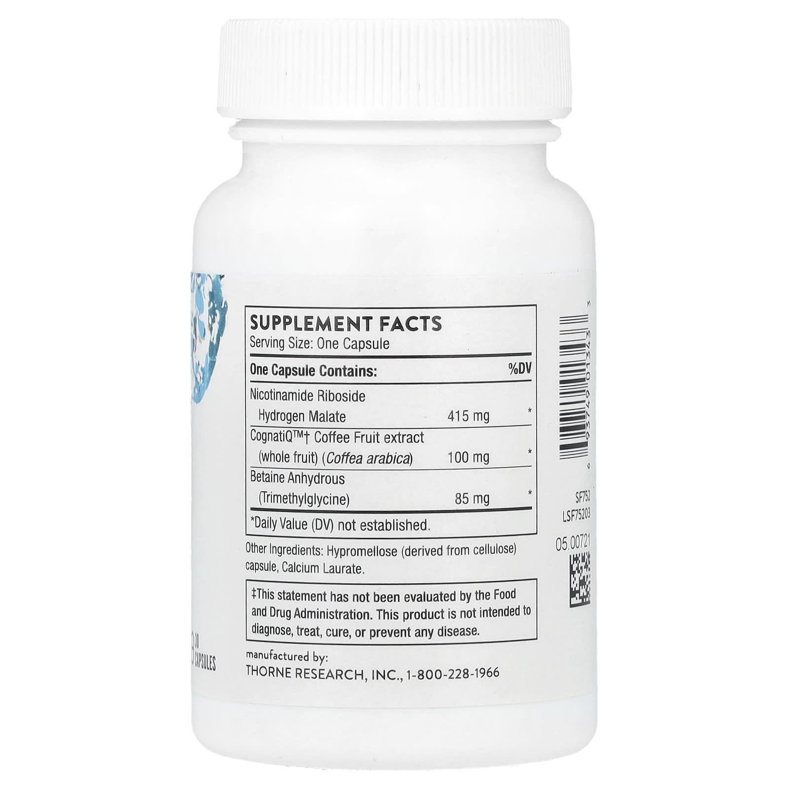 Thorne Fatores Cerebral 30 Cápsulas – Thorne Suplementos Cérebro e Cognição Fórmulas para Foco e Memória Vitaminas Vitamina B Vitamina B3 (Niacina) NAD+ (Nicotinamida Adenina Dinucleotídeo) Nicotinamide Riboside (NR).