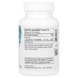 Thorne Fosfato de Piridoxal 180 Cápsulas (338 mg por Cápsula) – Thorne Suplementos Vitaminas Vitamina B Vitamina B6 (Piridoxina).
