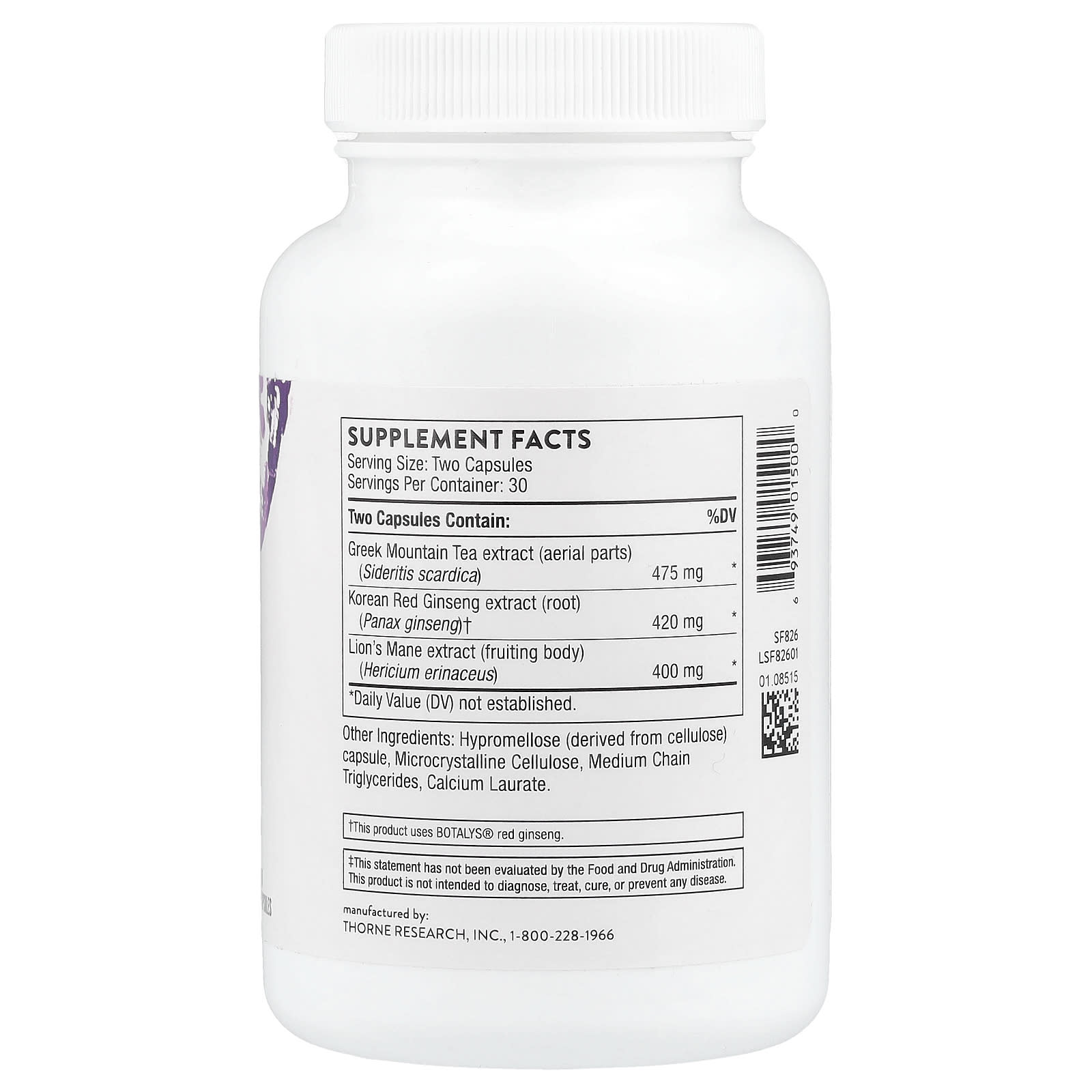 Thorne Ginseng Plus com Juba-de-Leão 60 Cápsulas – Thorne Suplementos Ervas Ginseng Cogumelos Juba de Leão.