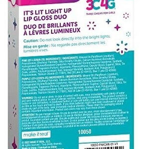 3C4G THREE CHEERS FOR GIRLS It's Light Up Lip Gloss Duo – Brilho labial brilhante para crianças com tampa e varinha – Pacote com 2 conjuntos de brilho labial infantil – Brilho labial com sabor de morango para meninas 8-10-12-14 – Conjunto de brilho labial LIGHT UP PARA MENINAS: uma dupla dinâmica – esses 2 protetores labiais estão acesos! Literalmente! Desaperte a tampa adornada com grafite e a tampa e a varinha se acenderão. Pré-adolescentes e adolescentes vão adorar a diversão escondida desses protetores labiais cintilantes – BRILHANTES E DELICIOSOS: esses glosses de tirar os lábios vêm em tons de rosa e lavanda com um lindo acabamento brilhante e um delicioso sabor de morango que meninas, pré-adolescentes e adolescentes vão adorar – USE E COMPARTILHE: guarde os dois ou dê um para uma melhor amiga! Com 2 lindos gloss labiais neste conjunto de maquiagem para crianças, as meninas podem guardar um para usar e ainda ter outro para compartilhar. TOTALMENTE PORTÁTIL: guarde esses brilhos labiais brilhantes nos bolsos, bolsas, bolsas, mesas ou armários, facilitando que as meninas mantenham os lábios hidratados e brilhantes o dia todo — PERFEITOS PARA MAIORES DE 8 ANOS: kits de brilho labial 3C4G são um ótimo presente para aniversários e feriados. Ou divida o pacote de brilho labial para dar lembrancinhas de festa para meninas! Não importa a ocasião, eles certamente serão um sucesso