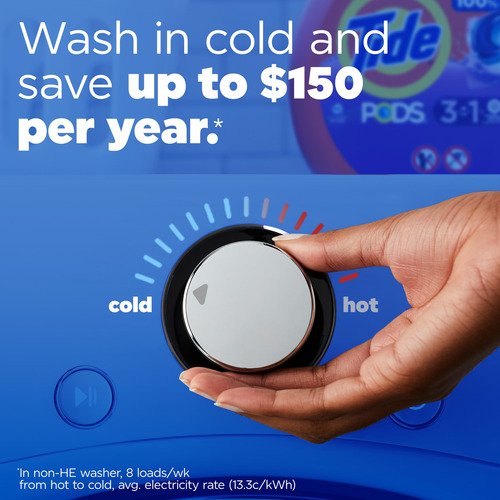 Basta colocar um Tide POD no tambor antes de adicionar roupa (para cargas maiores, use duas cápsulas).