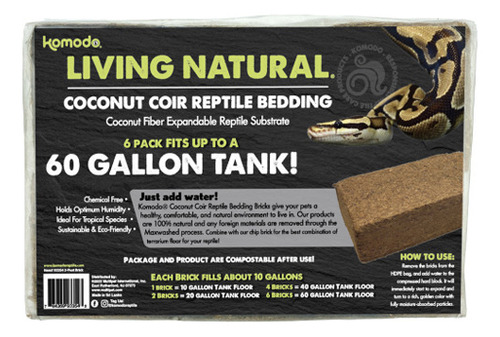 Os tijolos de cama de coco e turfa para répteis Komodo oferecem aos animais de estimação um ambiente saudável, confortável e natural para viver. Os produtos são 100% naturais e quaisquer materiais estranhos são removidos por meio do processo de lavagem máxima.