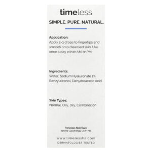 Timeless Skin Care Ácido Hialurônico 100% Puro 30 ml (1 fl oz) – Timeless Skin Care Beleza Tratamentos e Séruns Séruns Faciais Beleza por Ingrediente Cuidados com a Pele com Ácido Hialurônico.