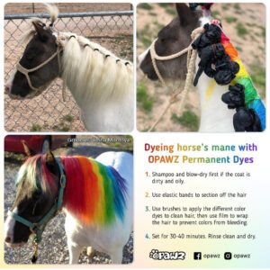 Permanent Color lasts for more than 20 washes. For creative grooming competition and professional groomers use. Long-lasting permanent color specially formulated for dog and horse. Provides bright, fashionable and unique color results. Can be used on white, grey, apricot, and brown coats. Coloring results may vary with coat type and breed. You may refer to the OPAWZ label for coloring results. Non-toxic and gentle on pets coat. All the colors can be mixed with each other according to your own preference. Set on for a longer time (30 minutes or more) for a more vibrant red result. Directions: Shampoo and blow-dry first if the dogs coat is dirty and oily. Shake well before opening. Apply onto desired coat area and leave it on for 20 minutes (For the Loyal Brown and Vital Copper, please let the color sit on the hair for at least 40 minutes). Rinse and dry after. Note *Be sure to stir well with a brush before use. *And for coloring limited areas, such as ears or tails, you may apply to dry fur. Results may vary depending on application strength and individual pets coat. *Coloring results may vary with coat type and breed. *Do not use any conditioner or applied other brands dye may contain conditioner before using OPAWZ dye. CAUTION *Not recommended for use on pets under 6 months. *Not recommended for use on cats. *Do not use on pets with sensitive, irritated, or damaged skin. *Do not allow pets to lick. *Avoid contact with eyes and mouth. If it happens, rinse with a large amount of water for 15 minutes. *If any allergic reactions happen during dyeing, discontinue process immediately and consult a veterinarian. Allergy test on the skin is recommended 48 hours prior to application if the pet is being colored for the first time. – OPAWZ permanent pet hair dye color will lasts for more than 20 washes. Our dog hair dye is used for creative grooming competition, professional groomers. OPAWZ dog hair dye is recommended by many groomers and will give your pet an exquisite and superior coloring result. – Long-lasting permanent dog hair dye color specially formulated for dog and horse. Provides bright, fashionable and unique color results. Non toxic dog dye can be used on white, grey, apricot, and brown coats. Coloring results may vary with coat type and breed. You may refer to the OPAWZ label for coloring results. Non-toxic and gentle on pets coat. All the colors can be mixed with each other according to your own preference. – OPAWZ pet hair dye directions: Shampoo and blow-dry first if the dogs coat is dirty and oily. Shake well before opening. Apply onto desired coat area and leave it on for 20 minutes (For the Loyal Brown and Vital Copper, please let the color sit on the hair for at least 40 minutes). Rinse and dry after. – Note: Be sure to stir pet hair dye with a brush before use. And for coloring limited areas, such as ears or tails, you may apply to dry fur. Results may vary depending on application strength and individual pets coat. Coloring results may vary with coat type and breed. Do not use any conditioner or applied other brands dye may contain conditioner before using OPAWZ dog hair dye. – CAUTION: Not recommended for use on pets under 6 months. Dont use on cats. Dont use on pets with sensitive, irritated, or damaged skin. Dont allow pets to lick. Avoid contact with eyes and mouth. If it happens, rinse with a large amount of water for 15 minutes. If any allergic reactions happen during dyeing, discontinue process immediately and consult a veterinarian. Allergy test on the skin is recommended 48 hours prior to application if the pet is being colored for the first time