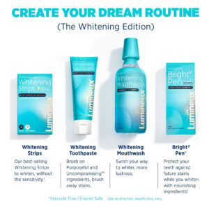 As tiras de clareamento dentário Lumineux removem suavemente as manchas e iluminam seu sorriso em apenas 30 minutos por dia. Formulado por dentistas para ser atóxico, seguro para o esmalte e compatível com o microbioma, o Lumineux embranquece sem sensibilidade usando ingredientes naturais como óleo de coco e ácido cítrico. Com mais de 50 estudos clínicos e milhares de sorrisos felizes, está comprovado que a Lumineux branqueia tão bem quanto outras marcas, mas sem os produtos químicos agressivos. Fáceis de usar, sem dor e perfeitas para um sorriso brilhante e saudável, as tiras de clareamento dental Lumineux são a forma natural de obter seu sorriso mais branco. – Clareamento sem sensibilidade: o que significa cuidar da boca para nós? Bem, quando se trata de clareamento, significa tirar as manchas sem tirar o esmalte também. Seus dentes podem e devem ser clareados sem o uso de alvejantes agressivos que danificam a estrutura dentária, causando sensibilidade. Inclui 14 tiras/7 tratamentos. — Comprovado clinicamente: sejamos honestos, todos os ingredientes melhores para você não significam nada se não provarem resultados. Então, decidimos mostrar cientificamente que seu sorriso mais brilhante poderia ser alcançado com a Lumineux e nós temos! Com mais de 60 estudos nos apoiando, a Lumineux pode dizer com orgulho que esses resultados vão além! – Microbiome Safe: Este é único. Na verdade, eu apostaria que a Lumineux é a única empresa de higiene bucal no mercado que pode alegar que ambas são certificadas como não tóxicas e seguras para microbiomas. Nossos produtos trabalham com seu corpo para ajudá-lo a alcançar a saúde bucal, protegendo suas bactérias boas e desintoxicando as ruins. – Ingredientes intencionais e intransigentes: convidamos você a conferir as listas de ingredientes em todos os nossos produtos! Eles contêm ingredientes que podem nutrir e ajudar a melhorar sua saúde bucal sem conservantes, aditivos ou corantes ou aromatizantes artificiais. – Favorito do influenciador: o produto mais popular da Lumineux e favorito dos influenciadores, essa faixa clareadora fácil de usar tem um sabor excelente e se encaixa diretamente na sua rotina diária de dentes mais brancos, sem o custo ou o incômodo dos tratamentos de clareamento em consultório.