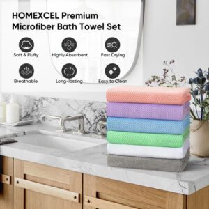Pacote com 6 toalhas de praia HOMEXCEL, toalhas de praia de microfibra de 30 x 60 polegadas, toalhas grandes, macias, absorventes e de secagem rápida para praia, piscina, natação, banho e viagens, toalha de praia grande para adultos e crianças – Toalha de piscina macia e absorvente: material de microfibra supermacio torna sua hora na praia mais confortável; também tem excelente absorção de água, absorvendo rapidamente a umidade para mantê-lo seco e confortável após nadar – Toalhas de tamanho grande: medindo 30 x 60 polegadas, nossas toalhas de microfibra oferecem cobertura generosa sem comprometer a portabilidade; leves e Facilmente dobráveis, nossas toalhas grandes são essenciais para viagens – Essenciais versáteis: da piscina à ioga, nossa toalha de banho leve é a sua escolha; se você precisa de toalhas de piscina, toalhas de spa, toalhas de banho ou qualquer outra coisa, elas foram projetadas para se adaptar a qualquer situação – Durável e confiável: nosso conjunto de toalhas não é apenas macio e confortável, mas também é altamente duradouro. Feitas com materiais premium, essas toalhas leves resistem ao teste do tempo e do uso, mantendo sua beleza e desempenho. Essencial para viagens: esta toalha de banho de viagem é sua companheira perfeita; leve e fácil de transportar, macia e confortável, com seis cores para escolher entre rosa, azul, roxo, verde, branco e cinza, tornando sua viagem de férias colorida e interessante