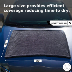 A toalha de secagem de microfibra Nimbus tem uma alta absorção de 1400 gramas por metro quadrado (gsm), tornando-a excelente para secar superfícies com eficiência. Medindo 24" x 36", seu tamanho generoso permite uma cobertura eficaz. O design do laço torcido aumenta sua capacidade de absorver a umidade, enquanto a borda perfeita garante durabilidade e evita o desgaste. Esta toalha é a escolha ideal para obter resultados de secagem sem riscos em várias superfícies. Toalha de secagem de carro para detalhamento de carros. Tecido de microfibra para carros — Projetado para amantes de carros, construído com excelência Nossa toalha de microfibra cinza de 24" x 36" para carros foi projetada com a paixão de verdadeiros entusiastas de carros, garantindo que seu veículo tenha a melhor aparência a cada uso, refletindo seu orgulho e dedicação à qualidade. – Poder de absorção incomparável Com 1400 GSM e um design de laço duplo, esta toalha absorve água e resíduos com eficiência, proporcionando um brilho sem riscos que aprimora sua experiência de dirigir, quilômetro após quilômetro. – Artesanato em que você pode confiar, feito para suportar inúmeras sessões de detalhamento, as bordas perfeitas de nossa toalha garantem durabilidade duradoura, proporcionando o desempenho confiável que seu carro merece. – Suave para seu veículo Criada com materiais premium, esta toalha oferece uma limpeza macia e poderosa que protege as superfícies do carro contra arranhões e fiapos, garantindo que sempre pareça pronta para o showroom. – Elevating Your Drive Projetada para quem se orgulha de viajar, esta toalha transforma o cuidado diário do carro em uma experiência de nível profissional, ajudando você a aproveitar cada momento ao volante com confiança.