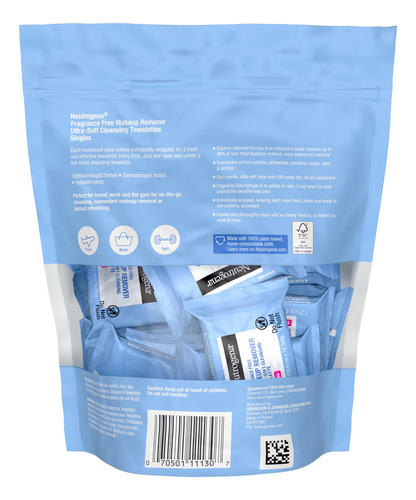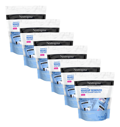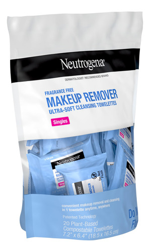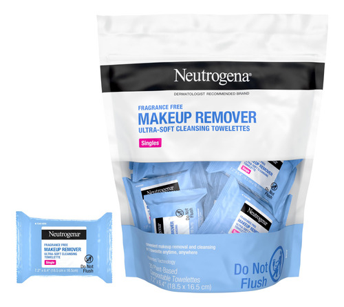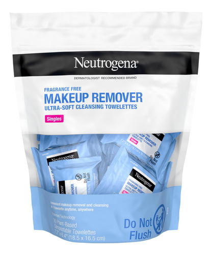 Toalhete de limpeza sem perfume Neutrogena, toalhetes faciais diários embalados individualmente para remover sujeira, óleo, maquiagem e rímel à prova d’água para viagens e viagens, 20 quilates (pacote com 6) — Toalhete de limpeza sem perfume Neutrogena embalado individualmente. Esses toalhetes faciais de limpeza individuais pré-umedecidos são ideais para limpeza completa e remoção de maquiagem em viagens e em qualquer lugar. Nossos lenços removedores de maquiagem dissolvem com eficácia todos os vestígios de sujeira, óleo e maquiagem em segundos, proporcionando um poder superior de limpeza e remoção de maquiagem na ponta dos dedos. Convenientes e embalados individualmente, coloque-os em sua bolsa, bolsa de ginástica ou bagagem — esses lenços faciais suaves sem perfume são descartáveis e limpam completamente a pele, sem deixar resíduos, portanto, não há necessidade de enxágue. Basta abrir e desdobrar um toalhete removedor de maquiagem em tamanho real para usar a qualquer hora e em qualquer lugar. De uma marca recomendada por dermatologistas, os toalhetes de limpeza facial apresentam uma fórmula sem fragrância, álcool e óleo e são testados por oftalmologistas, dermatologistas e alergias