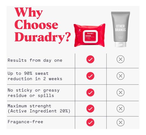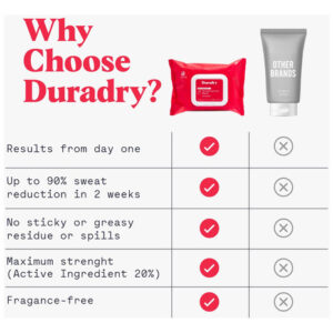 Lenços antitranspirantes Duradry — Máxima resistência, antitranspirantes para mãos e pés, lenços desodorizantes para suor, sem talco, bloqueiam o suor e o odor, recomendados pelo dermatologista — Sem perfume (pacote com 6) — Toalhetes antisuor: projetados para reduzir a transpiração no corpo, nas mãos e nos pés, esses lenços bloqueiam temporariamente os dutos de suor, oferecendo proteção eficaz contra umidade e odor – Antitranspirante eficaz: embora os resultados possam Além disso, nossos lenços antitranspirantes podem ajudar a reduzir a transpiração em até 90% em duas semanas. Um pacote oferece até um mês de proteção contra o suor – SECA RAPIDAMENTE: Nossos lenços antitranspirantes secam rapidamente, sem deixar resíduos úmidos ou pegajosos. Você pode colocar meias, luvas ou loções logo após o uso, sem desconforto ou demora – RECOMENDADO PELO DERMATOLOGISTA: Nossos lenços antitranspirantes para homens e mulheres usam uma fórmula vegana, livre de produtos químicos agressivos, para controle eficaz do suor nas mãos, pés, costas, axilas, peito e virilha – USO RECOMENDADO: Os lenços antitranspirantes Duradry podem ser usados até duas vezes ao dia para controlar o suor no corpo, nas mãos, e pés. Para obter os melhores resultados, aplique-os antes de dormir para obter a máxima eficácia