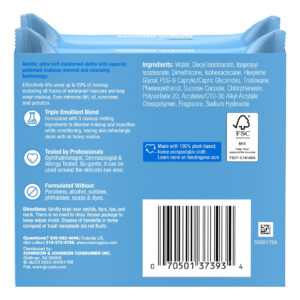 Remove makeup in one easy step with Neutrogena Makeup Remover Face Wipes. These soft and gentle pre-moistened facial cleansing towelettes effectively dissolve all traces of dirt, oil and makeup–even waterproof mascara– for clean, fresh looking skin every day. Our makeup remover features an effective micellar-infused, triple emollient formula that leaves skin feeling refreshed, nourished, conditioned and thoroughly clean with no heavy residue. These facial towelettes also remove sweat, sunscreen, and pollution from skin with no need to rinse after use. These daily face wipes are formulated to be gentle on the sensitive eye area. The makeup removing wet wipes are formulated without phthalates, parabens, sulfates, alcohols, soaps, or dyes and are ophthalmologist-, dermatologist-, and allergy-tested. Designed with the earth in mind, the compostable wipes are made with 100% plant-based fibers and biodegrade in 35 days in home compost.