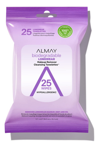 Toalhetes removedores de maquiagem facial Almay, de longa duração e impermeáveis, hipoalergênicos, sem perfume, testados por dermatologistas e oftalmologistas, 25 unidades (pacote com 1) — os toalhetes removedores de maquiagem facial Almay são biodegradáveis e facilitam a remoção de maquiagem facial. Inclui 25 lenços. – Remove suavemente a maquiagem e a base, a sujeira e a oleosidade – Os lenços são feitos de fibras 100% biodegradáveis – Adequados para todos os tipos de pele, até mesmo peles sensíveis. Adequado para olhos sensíveis e usuários de lentes de contato – Hipoalergênico. Não comedogênico. Sem fragrância. Livre de crueldade. Testado por dermatologista e oftalmologista
