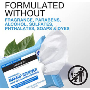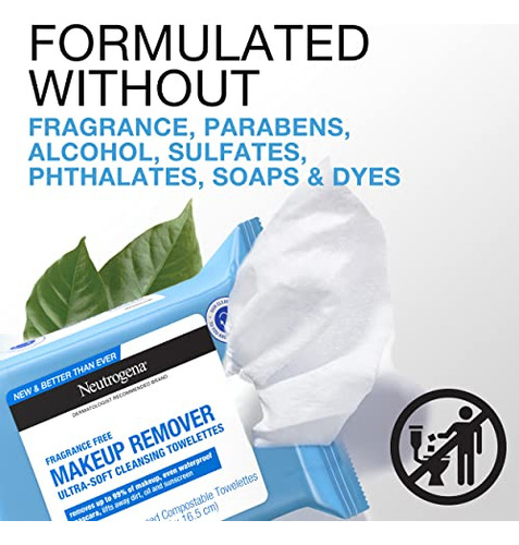 Remova a maquiagem em uma etapa fácil com os toalhetes faciais sem perfume Neutrogena. Esses lenços de limpeza facial macios e delicados, pré-umedecidos e sem perfume dissolvem com eficácia todos os vestígios de sujeira, óleo e maquiagem, até mesmo rímel à prova d’água, para uma pele limpa e fresca todos os dias. Nosso removedor de maquiagem apresenta uma fórmula emoliente tripla com infusão micelar eficaz que deixa a pele refrescada, nutrida, condicionada e completamente limpa, sem resíduos pesados. Esses lenços faciais também removem o suor, o protetor solar e a poluição da pele sem a necessidade de enxaguar após o uso. Esses toalhetes faciais diários são formulados para serem suaves na área sensível dos olhos. Os lenços umedecidos hipoalergênicos removedores de maquiagem são formulados sem ftalatos, parabenos, sulfatos, álcoois, sabonetes, fragrâncias ou corantes e são testados por oftalmologistas, dermatologistas e alergias. Projetados pensando na terra, os lenços compostáveis são feitos com fibras 100% vegetais.