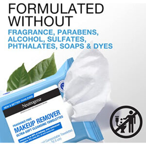 Remova a maquiagem em uma etapa fácil com os toalhetes faciais sem perfume Neutrogena. Esses lenços de limpeza facial macios e delicados, pré-umedecidos e sem perfume dissolvem com eficácia todos os vestígios de sujeira, óleo e maquiagem, até mesmo rímel à prova d'água, para uma pele limpa e fresca todos os dias. Nosso removedor de maquiagem apresenta uma fórmula emoliente tripla com infusão micelar eficaz que deixa a pele refrescada, nutrida, condicionada e completamente limpa, sem resíduos pesados. Esses lenços faciais também removem o suor, o protetor solar e a poluição da pele sem a necessidade de enxaguar após o uso. Esses toalhetes faciais diários são formulados para serem suaves na área sensível dos olhos. Os lenços umedecidos hipoalergênicos removedores de maquiagem são formulados sem ftalatos, parabenos, sulfatos, álcoois, sabonetes, fragrâncias ou corantes e são testados por oftalmologistas, dermatologistas e alergias. Projetados pensando na terra, os lenços compostáveis são feitos com fibras 100% vegetais.