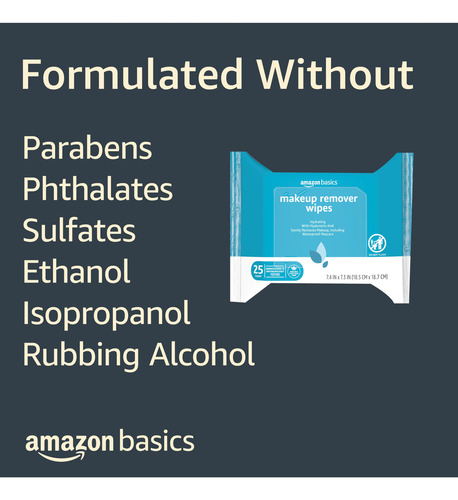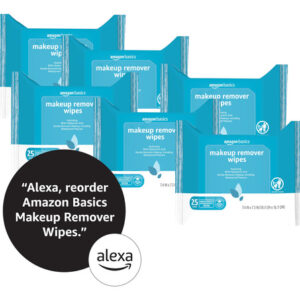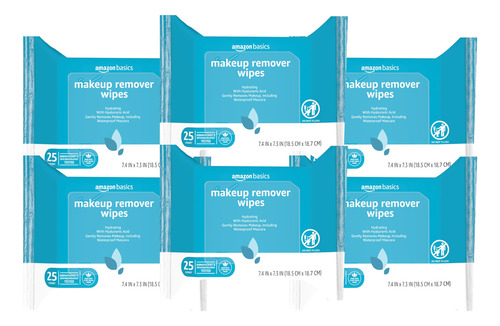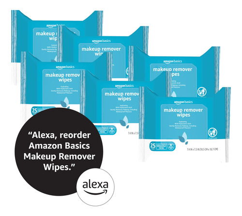 Toalhetes hidratantes removedores de maquiagem Amazon Basics, 150 toalhetes (pacote com 6) – Seis pacotes de 25 unidades que podem ser fechados novamente de lenços removedores de maquiagem Amazon Basics que limpam, refrescam e hidratam seu rosto – Esses lenços de limpeza hidratantes Amazon Basics hidratam enquanto removem impurezas e maquiagem, até mesmo rímel à prova d’água. O ácido hialurônico tem excelentes capacidades de retenção de água para ajudar a manter a pele hidratada. Esta formulação é hidratante, não irritante e não gordurosa. Use diariamente para uma pele limpa, revigorada e sem maquiagem. Não é necessário enxaguar após o uso. – A fórmula é hipoalergênica, tem pH equilibrado, não é comedogênica e não causa irritantes agressivos, sendo testada por dermatologistas e oftalmologistas – Formulada sem parabenos, ftalatos, sulfatos e álcool – A compra por voz da Alexa está ativada: para fazer seu próximo pedido, basta dizer, Alexa, reencomendar os lenços removedores de maquiagem Amazon Basics” – Uma marca da Amazon