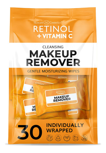 Toalhetes embalados individualmente com retinol e vitamina C Ilumine e renove sua pele com toalhetes embalados individualmente com retinol e vitamina C. Formulados com retinol (vitamina A) e vitamina C, esses lenços limpam, hidratam e promovem um brilho juvenil enquanto removem maquiagem, sujeira e impurezas. Se você está na academia, viajando ou apenas precisa se refrescar rapidamente, esses lenços fornecem uma limpeza eficaz sem a necessidade de água. O poder combinado do retinol e da vitamina C ajuda a clarear manchas escuras, melhorar a textura da pele e restaurar seu brilho natural.