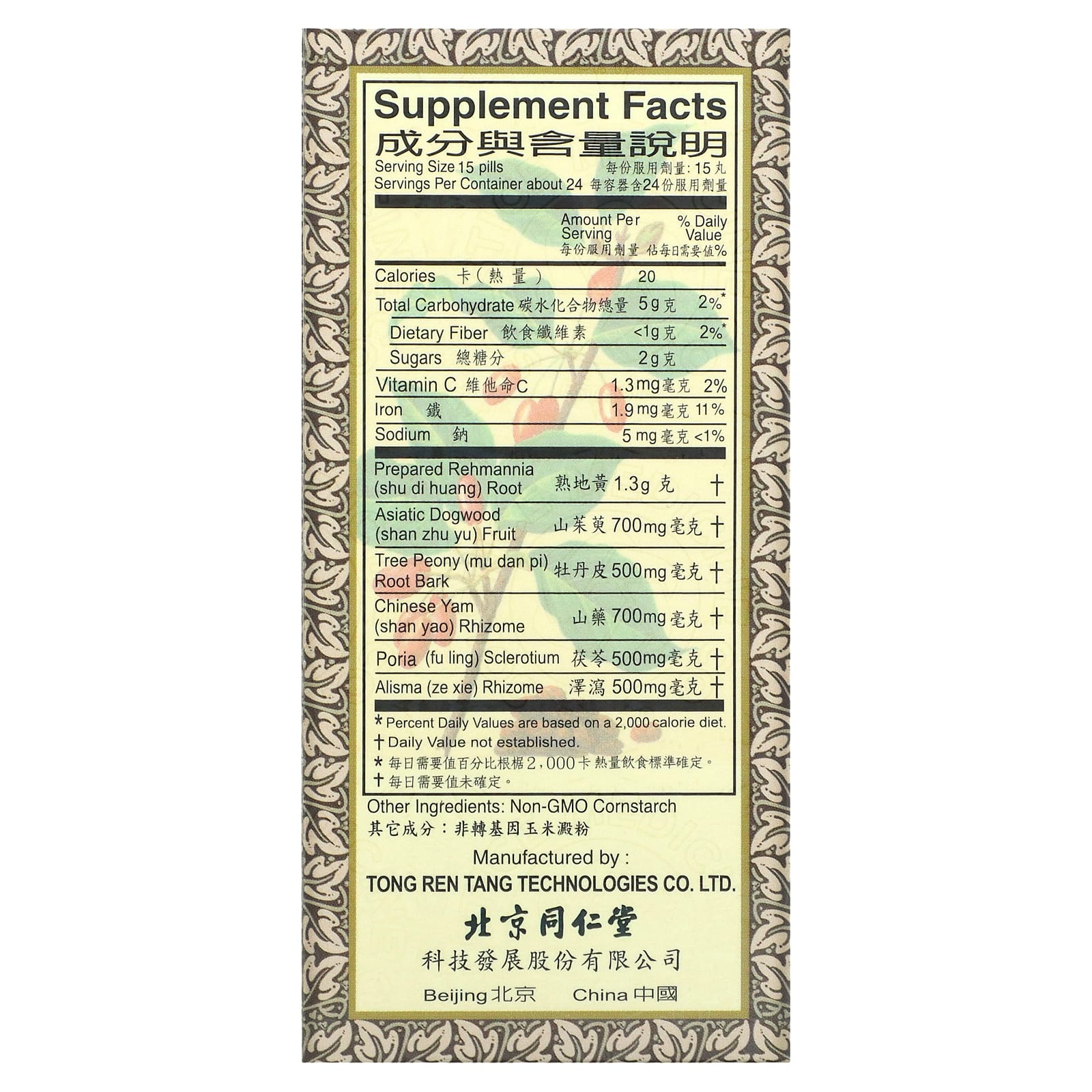Tong Ren Tang Liu Wei Di Huang Wan Contribui para a Saúde do Sistema Urogenital do Sistema Imunológico e da Área Lombar 360 Comprimidos – Tong Ren Tang Suplementos Ervas Fórmulas de Ervas.
