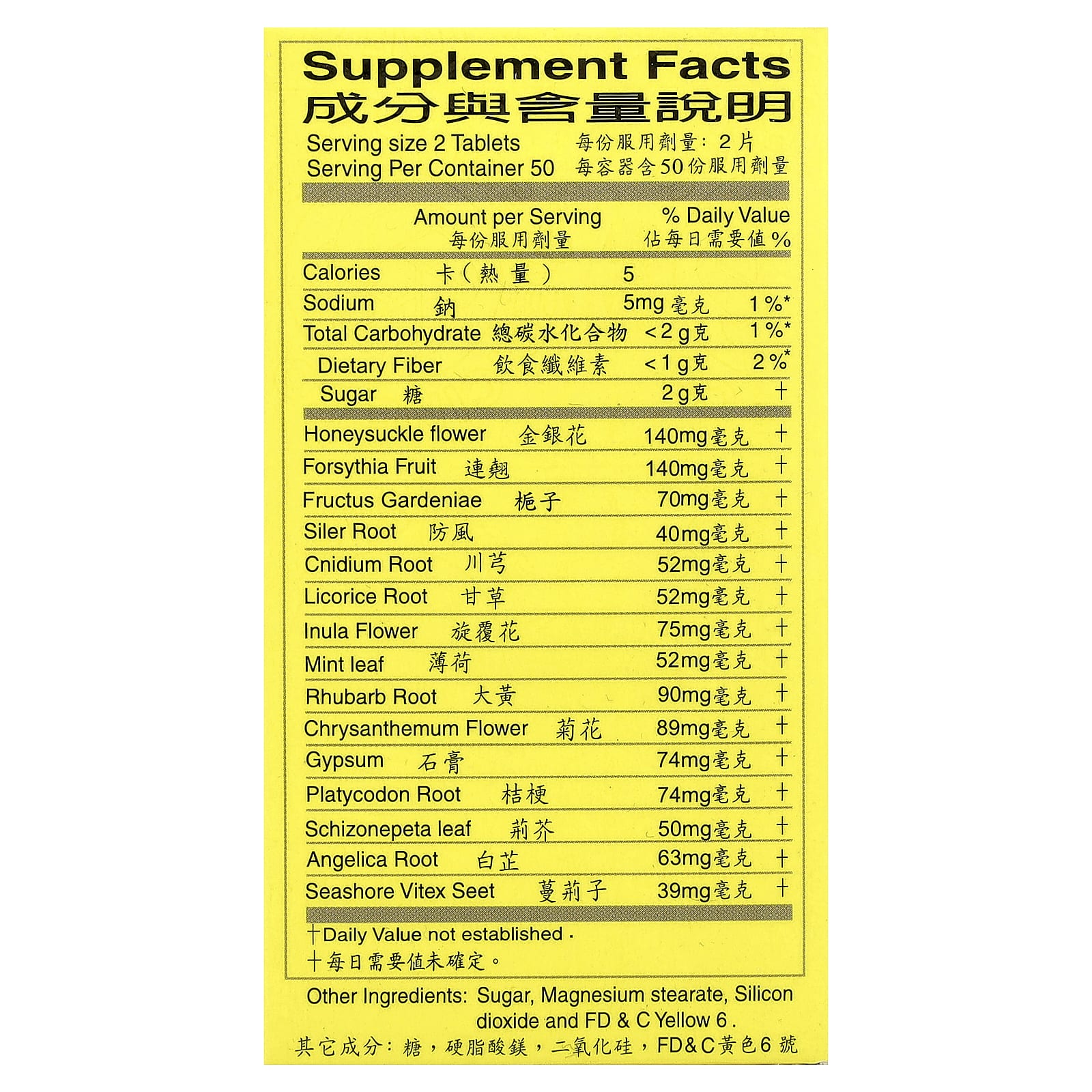 | Folha de Schizonepeta | 50 mg | † |
