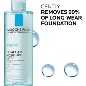 Tônico de água de limpeza micelar La Roche-Posay Effaclar para pele oleosa, removedor de maquiagem sem óleo, seguro para peles sensíveis com água termal, 13,52 fl oz (pacote com 1) — Essa água micelar para pele oleosa é um limpador sem enxágue que purifica a pele e limpa até partículas microscópicas de poluição. As micelas que encapsulam a sujeira na fórmula atraem sujeira, óleo e maquiagem, facilitando a limpeza suave. – A água micelar purificante para pele oleosa remove a maquiagem, limpa e tonifica – Textura suave e semelhante à água. Adequado para rosto, olhos e lábios – 94% disseram que remove agradavelmente a maquiagem facial. 94% disseram que sua pele ficou clara e limpa. 93% disseram que removeu perfeitamente as impurezas e a sujeira. *Resultados baseados em um teste de consumo de quatro semanas – Formulado com glicerina e água termal La Roche Posay para hidratar e suavizar a pele