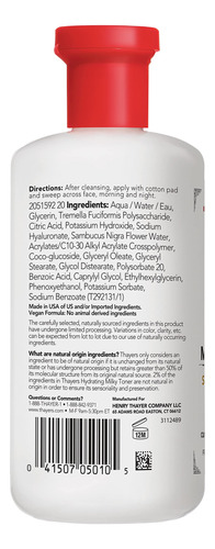 Tônico Facial Thayers Milky Com Cogumelo Da Neve E Ácido Hia