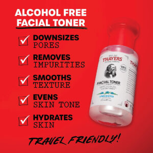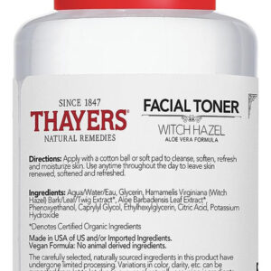 Tônico facial de hamamélis sem perfume sem álcool Thayers Trial Size com fórmula de aloe vera – 3 onças – Tônico facial sem perfume: sem álcool e formulado para limpar, tonificar, hidratar e equilibrar o nível de pH da pele; este tônico ajuda a contrair os poros, controlar a produção de acne e óleo, acalmar a pele e fornecer um impulso antioxidante – Os melhores ingredientes naturais: feito com hamamélis orgânica certificada, cultivada exclusivamente para THAYERS Em uma fazenda familiar em Connecticut, nossa mistura exclusiva com Aloe Vera oferece benefícios hidratantes e antioxidantes para um brilho natural – Exclusivo Formulação: O extrato de hamamélis THAYERS é feito à moda antiga (por meio de maceração) usando somente água e nunca tocando em álcool; testado dermatologicamente quanto à segurança – Remédios testados pelo tempo: estamos comprometidos com a excelência com nossas fórmulas, com ingredientes clássicos que usamos há quase dois séculos; os elixires THAYERS estão presentes nos armários de remédios há gerações. Depois de usá-los, você saberá o porquê – Livre de crueldade e sustentáveis: nossos produtos são sempre 100% livres de crueldade e livres de quaisquer ingredientes de origem animal (exceto cera de abelha), e nosso objetivo é reduzir desperdício oferecendo embalagens recicláveis e biodegradáveis