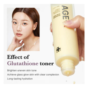– 24 horas de brilho duradouro: mantenha a pele hidratada com brilho de vidro de longa duração. 16,7% da melhora do brilho da pele após 1 uso. (Trecho do relatório de teste de aplicação humana do AGE-R Glutathione Glow Toner)