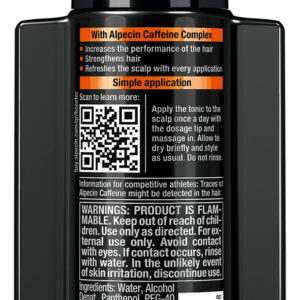 Amplificador de cabelo Alpecin Black Edition — Tônico nutritivo: este líquido pós-shampoo fortalece e nutre cabelos finos. – Cabelos mais grossos e fortes: cafeína, zinco e niacina trabalham juntos neste tônico masculino para couro cabeludo para recarregar o cabelo ralo e proporcionar uma sensação mais espessa, forte e cheia. – Tônico para couro cabeludo com cafeína sem enxágue: perfeito para usar nos dias em que você não usa shampoo, o Alpecin O After Shampoo Liquid fornece ao cabelo a dose diária de cafeína necessária para manter o crescimento natural do cabelo e obter cabelos com aparência mais cheia. – ENERGIZE E RECARREGUE: Com cafeína e mamona óleo, este tônico para couro cabeludo recarrega e energiza os fios para uma cabeça mais cheia. – LUTE PELO SEU CABELO: O uso diário do nosso tônico para couro cabeludo Alpecin ajuda a promover o crescimento natural do cabelo e mantém seu cabelo com aparência e sensação de espessura e volume.