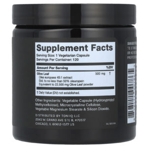 Toniiq Folha de Oliveira 120 Cápsulas (500 mg por Cápsula) – Toniiq Suplementos Ervas Folha de Oliva.