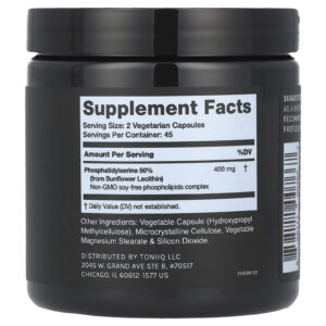 Toniiq Fosfatidilserina 90 Cápsulas (200 mg por Cápsula) – Toniiq Suplementos Fosfolipídeos Fosfatidilserina.