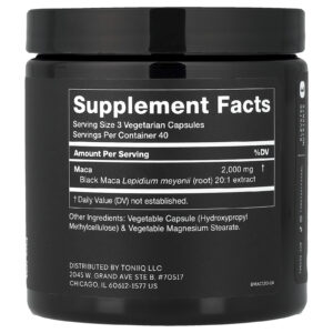 Toniiq Maca-Peruana Negra 20:1 120 Cápsulas (666 mg por Cápsula) – Toniiq Suplementos Ervas Maca Maca Preta.