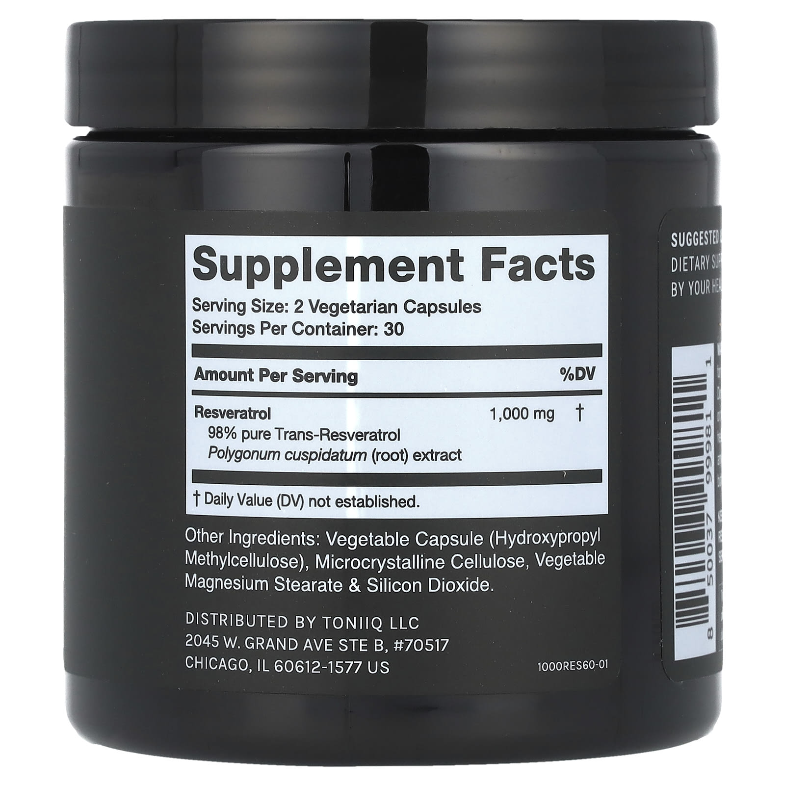 Toniiq Resveratrol 1000 60 Cápsulas (500 mg por Cápsula) – Toniiq Suplementos Antioxidantes Resveratrol.