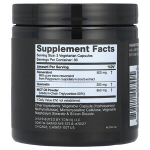 Toniiq Resveratrol+ Com Quercetina e TCM 90 Cápsulas – Toniiq Suplementos Antioxidantes Resveratrol.