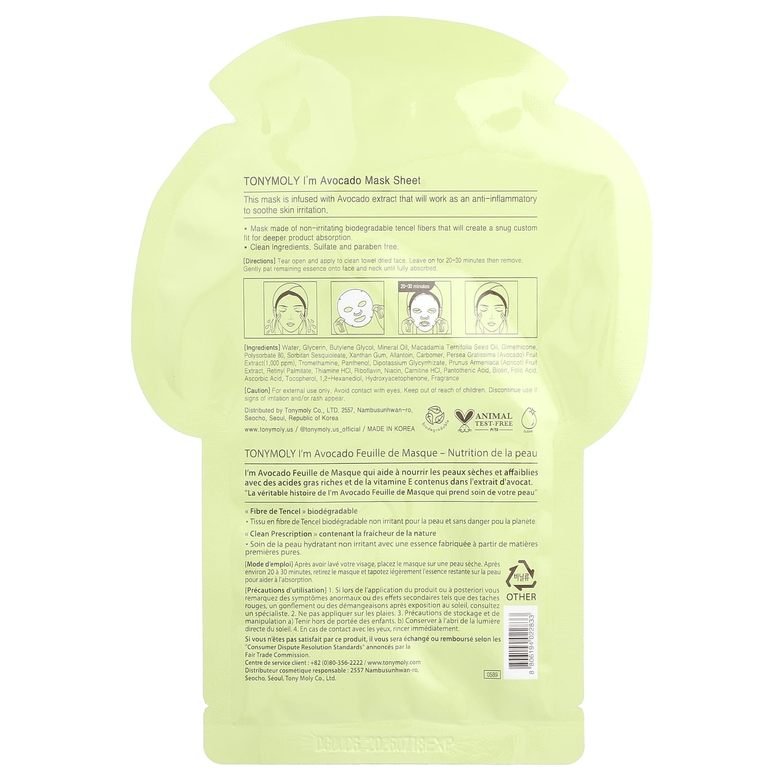 TonyMoly Im Abacate Folha de Máscara Nutritiva 1 Folha 21 g (074 oz) – TonyMoly Beleza Máscaras Faciais de Beleza Máscaras Faciais Máscaras em folha K-Beauty.