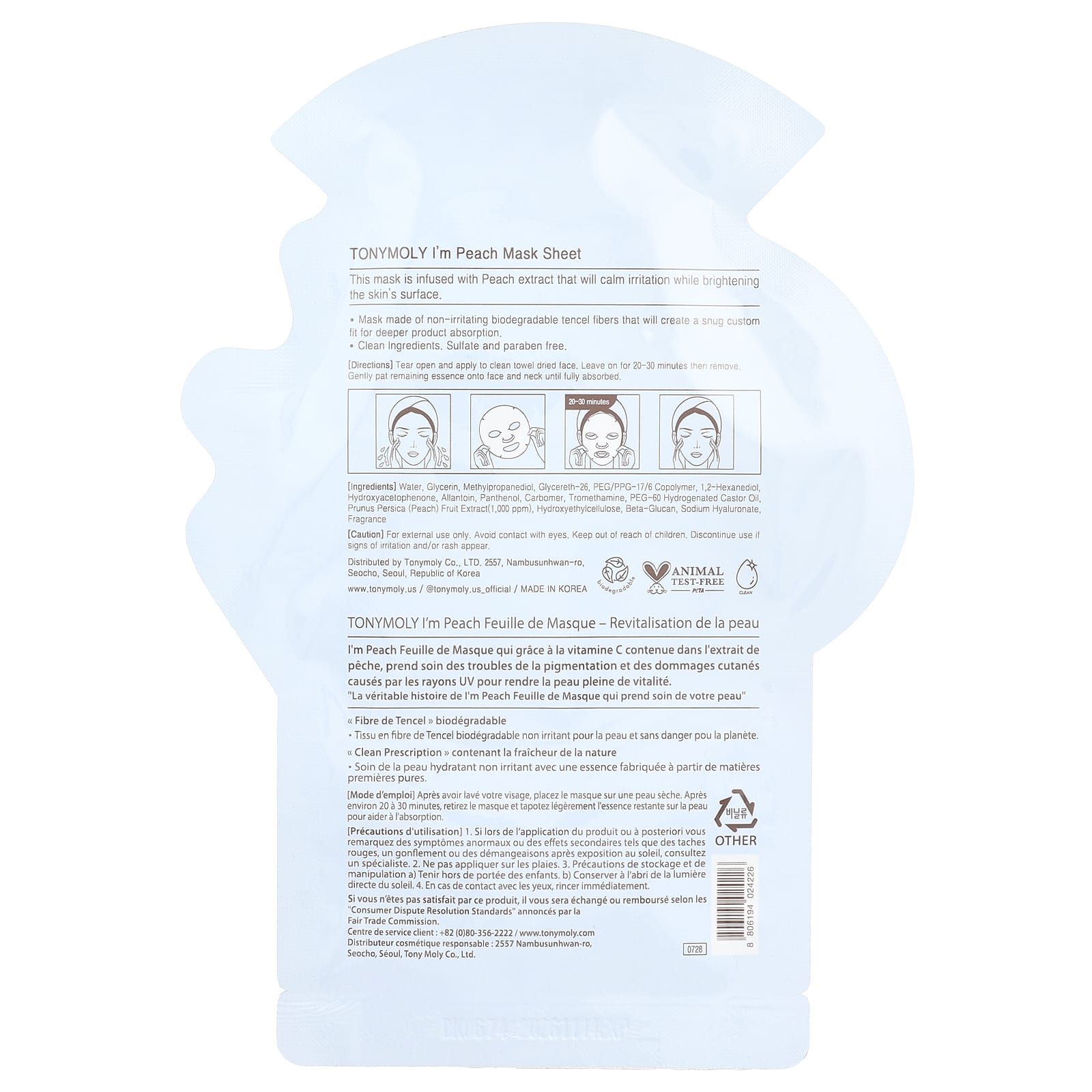 TonyMoly Im Peach Máscara de Beleza Vitalizante 1 Unidade 21 g (074 oz) – TonyMoly Beleza Máscaras Faciais de Beleza Máscaras Faciais Máscaras em folha K-Beauty.