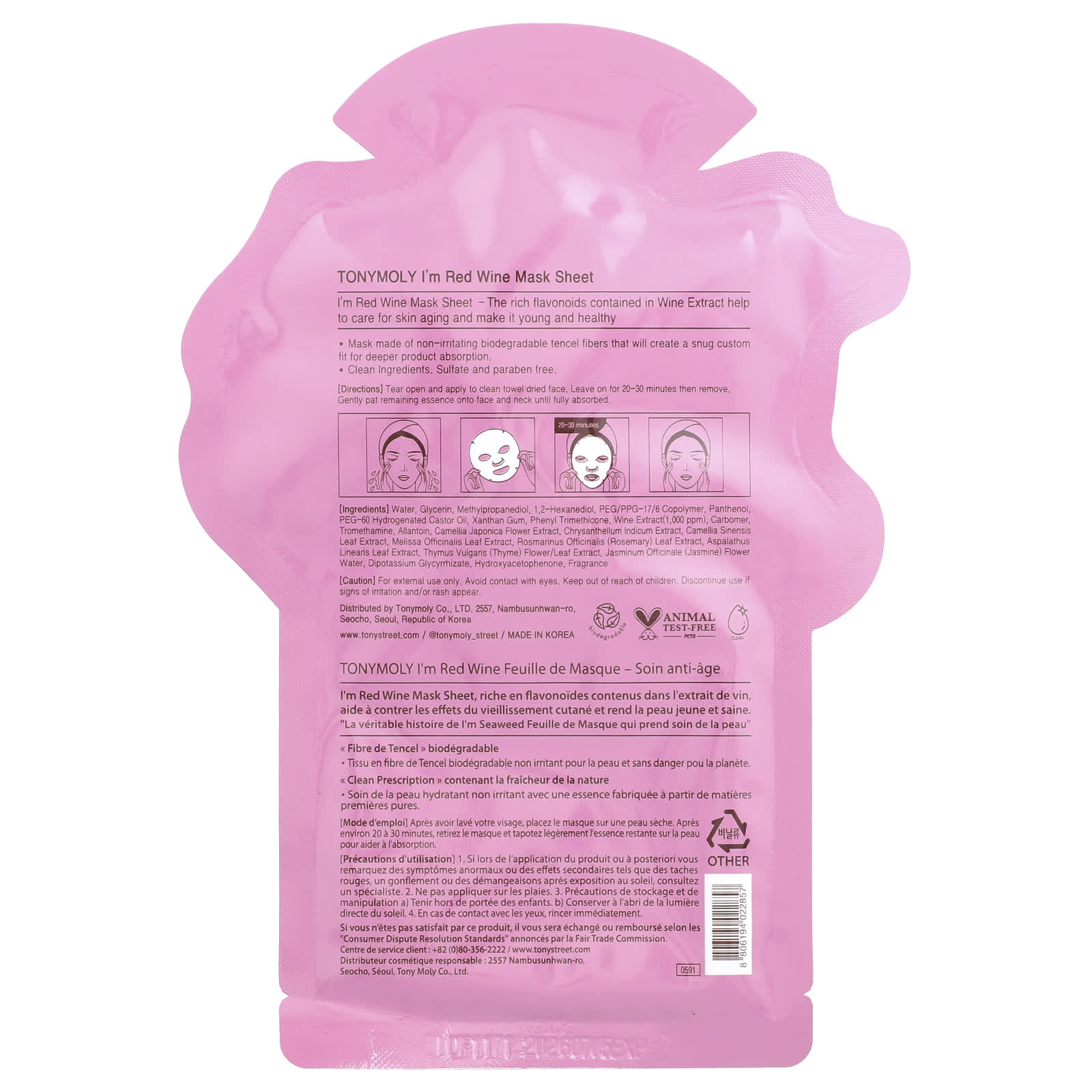 TonyMoly Im Red Vinho Máscara de Beleza para Cuidados com os Poros 1 Unidade 21 g (074 oz) – TonyMoly Beleza Máscaras Faciais de Beleza Máscaras Faciais Máscaras em folha K-Beauty.