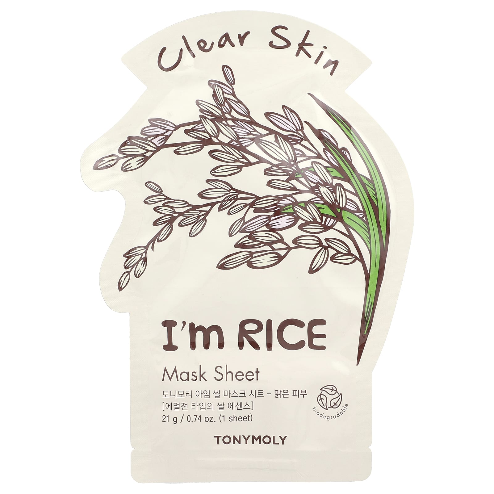 TonyMoly Im Rice Folha de Máscara Clear Skin Beauty 1 Folha 21 g (074 oz) – TonyMoly Beleza Máscaras Faciais de Beleza Máscaras Faciais Máscaras em folha K-Beauty.